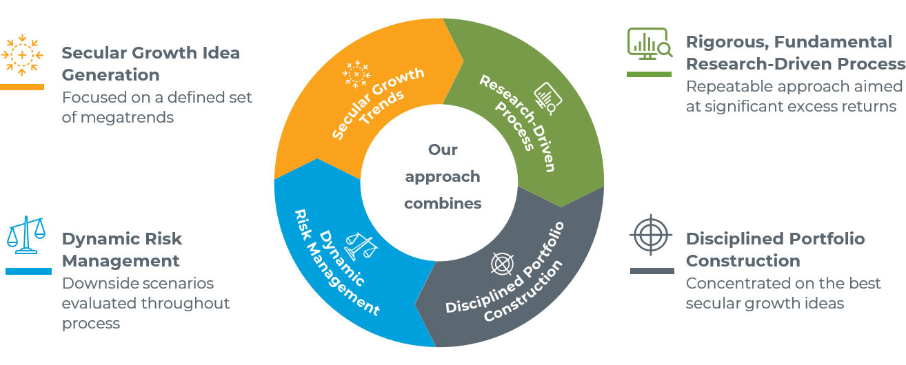 We seek to identify inflection points in multiyear secular trends driven by changes in technology, consumer preferences, demographics, and environmental sustainability, which can lead to significant increases in their markets, earnings trajectories, and market capitalizations.
