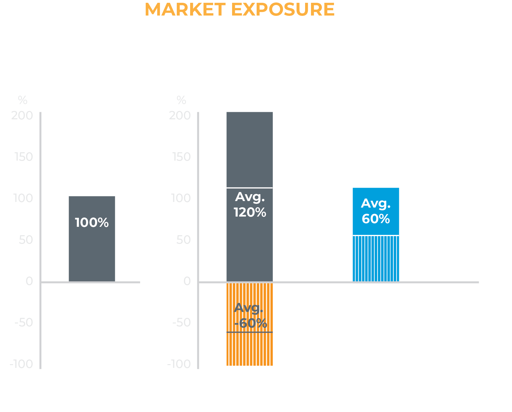 Downside Protection in Volatile Markets - Average target long exposure to the market is 120%, with an average net exposure of 60%, providing investors with downside protection in volatile markets.